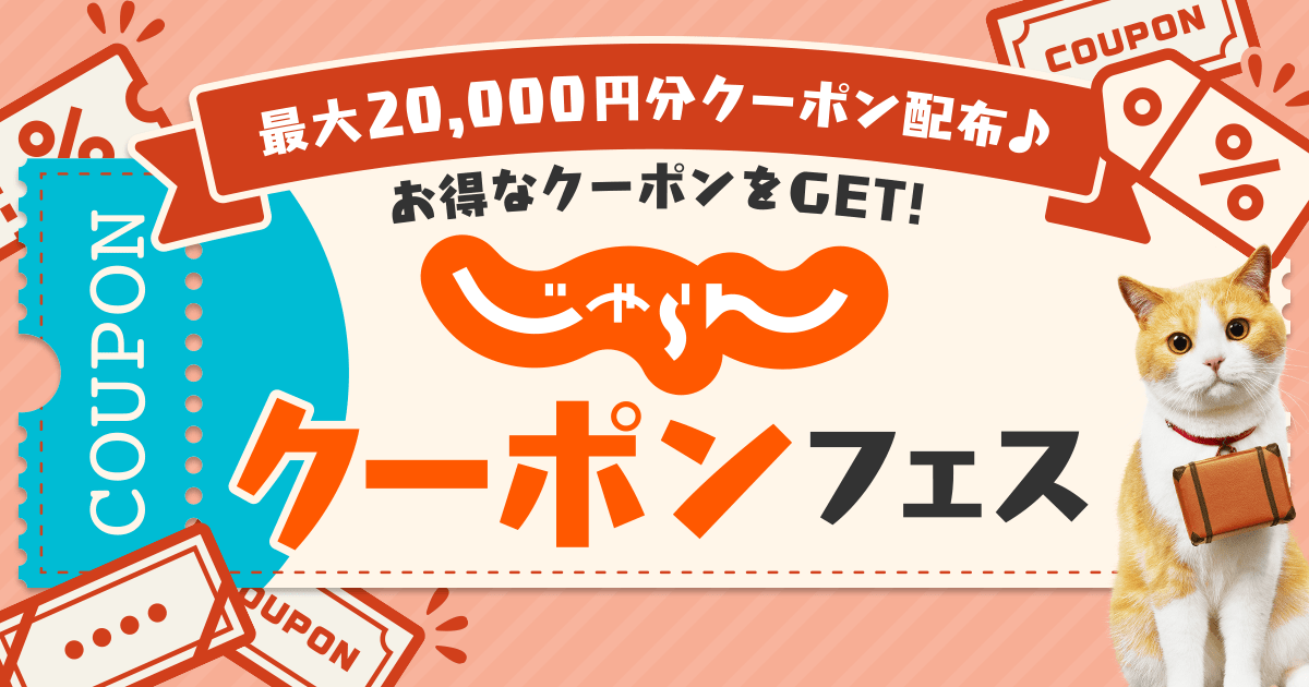 じゃらんクーポンフェス開催中!ホテルや旅館の宿泊がお得になるクーポンやじゃらん限定プランが盛りだくさんです♪ご予約はお早めに!宿・ホテル予約以外にもお得なじゃらんパック・遊び体験予約・レンタカーでも使える旅がお得になるクーポンを配布!
